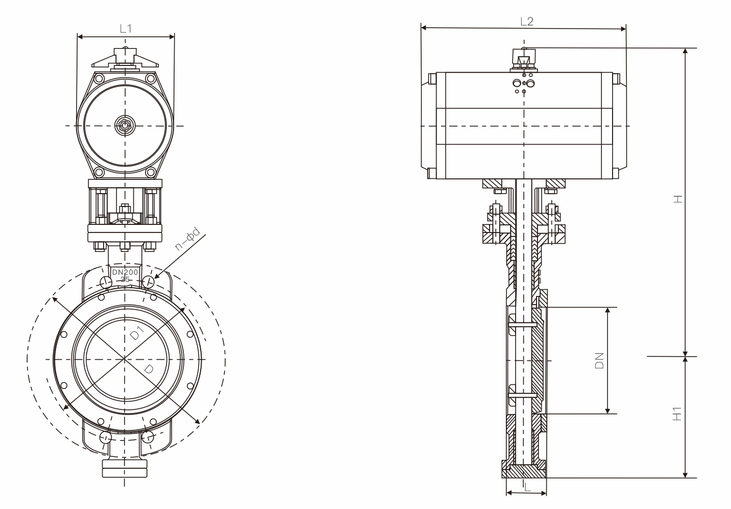 氣動對夾式硬密封蝶閥采用精密的J形彈性密封圈和三偏心多層次金屬硬密封結(jié)構(gòu),被廣泛用于介質(zhì)溫度≤425℃的冶金 、電力、石油化工以及給排水和市政建設(shè)等工業(yè)管道上,作調(diào)節(jié)流量和載斷流體使用。該閥采用三偏心結(jié)構(gòu),閥座與碟板密封面均采用不同硬度和不銹鋼制作,具有良好的耐腐蝕性,使用壽命長,本閥具有雙向密封功能。
