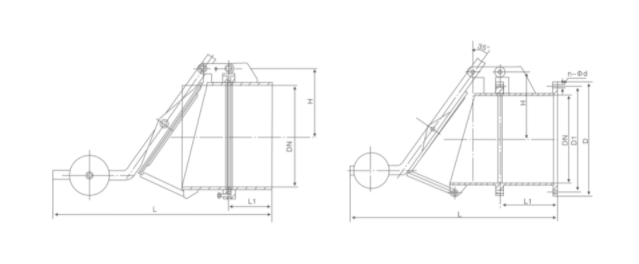 泄爆閥由閥體、爆破膜、支持器、閥蓋、重錘等零件組成。爆破膜裝在夾持器中間,與閥體用螺栓連接。系統(tǒng)超壓時(shí),爆破膜破裂。瞬間泄壓,閥蓋彈起后在重力作用下復(fù)位。本閥在更換爆破膜時(shí)需要向上掀起閥體及夾持器。爆破膜由用戶根據(jù)工藝特性自備,主要用于建材、冶金、石油、化工等領(lǐng)域。